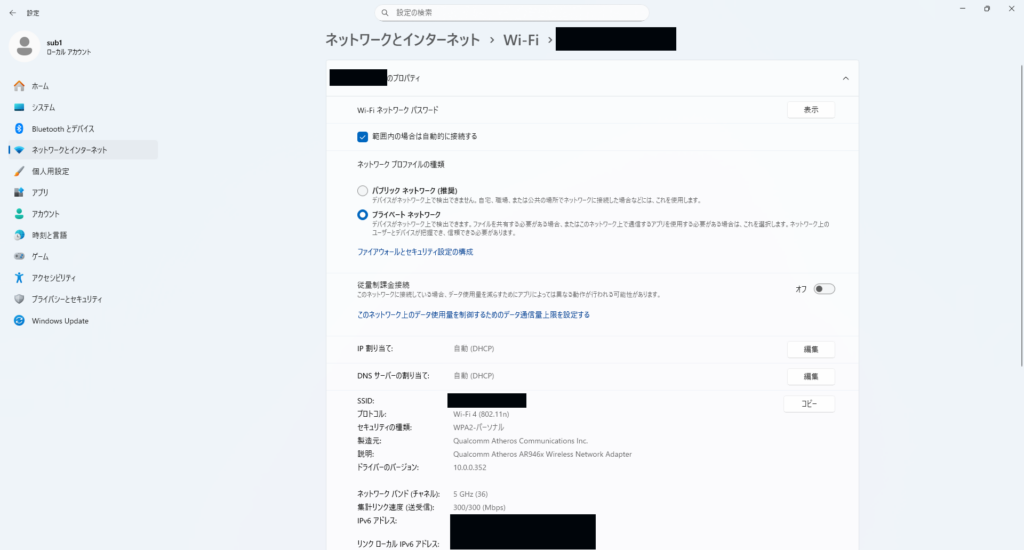 イーサネットまたはWi-Fiのプロパティ→プライベートネットワーク、に設定