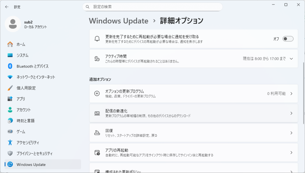 →Windows Update→エンドユーザーエクスペリエンスの管理→自動更新を構成する