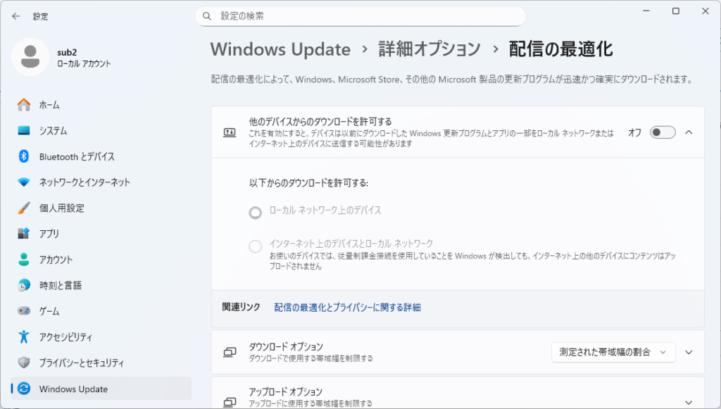 ほかのデバイスからのダウンロードを許可する、をオフにします