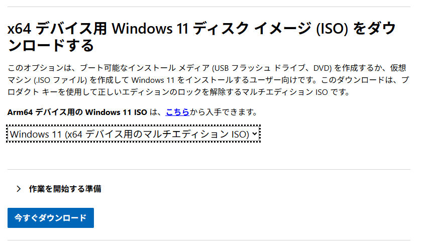 x64 デバイス用 Windows 11 ディスク イメージ (ISO) をダウンロードする