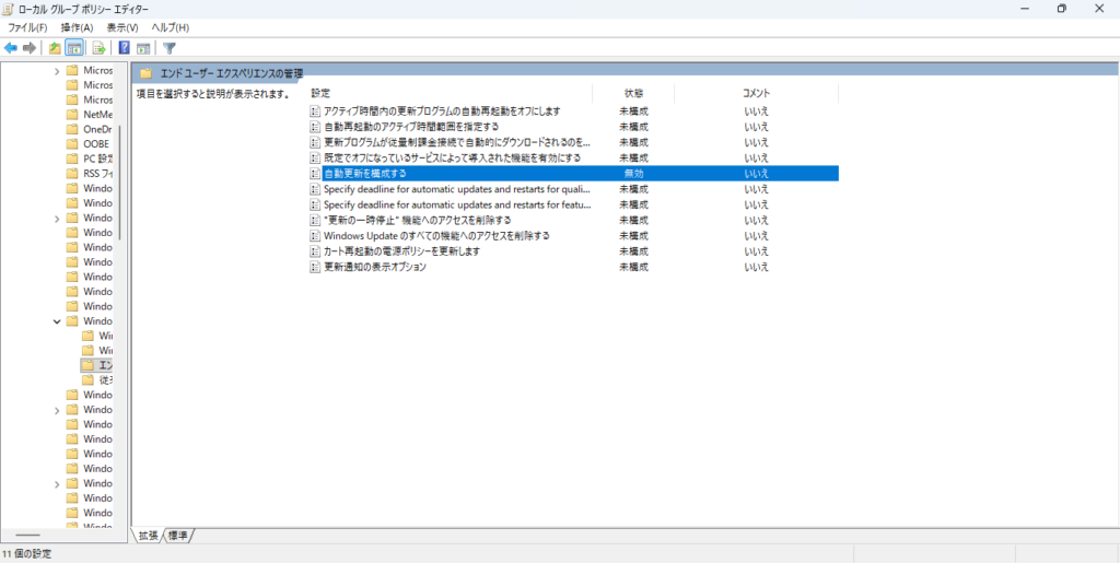 今回はWindows11 Proでの手順で、グループポリシーエディターを使う方法です