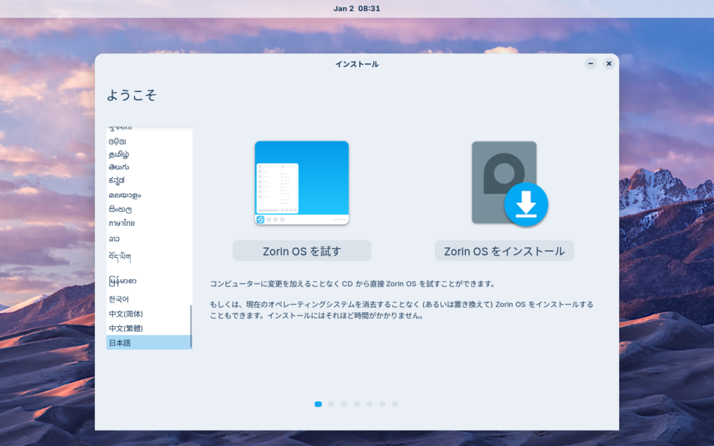 ここからZorinのインストール手順を解説していきます