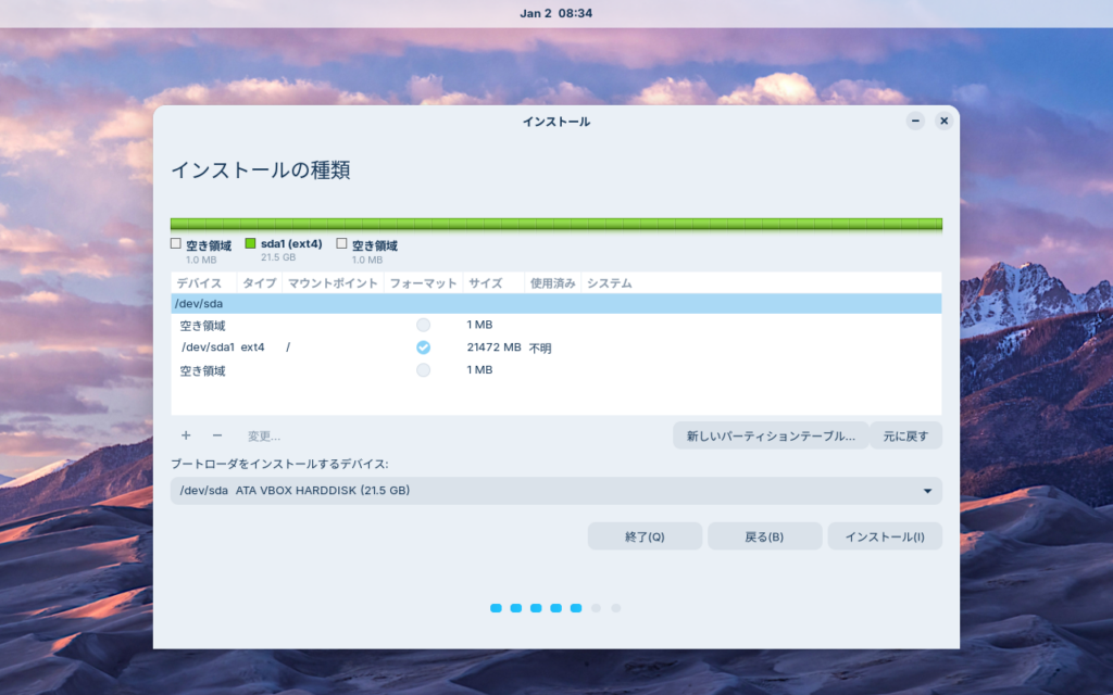 一応、ここでパーティションサイズを調整することもできます
