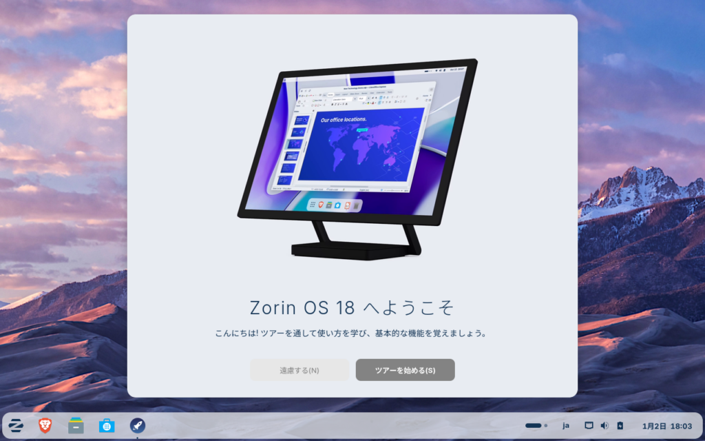 これで、Zorin OSが立ち上がりました