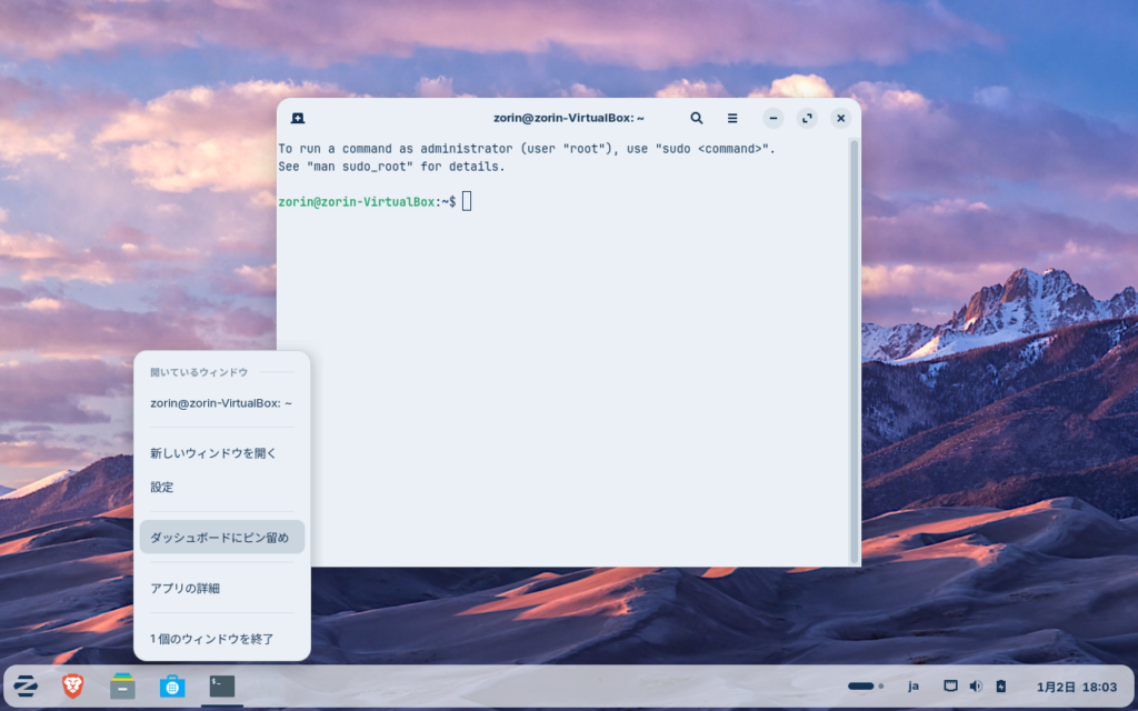 よく使うので、Windowsの様にタスクバーにピン止めしておきます