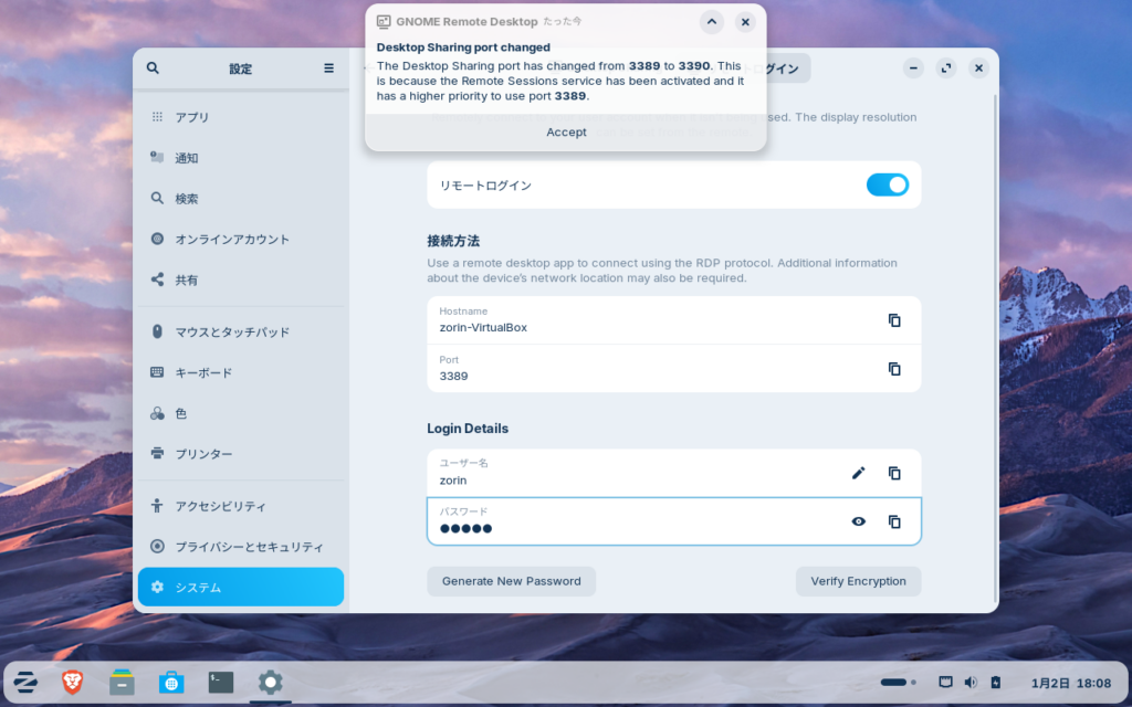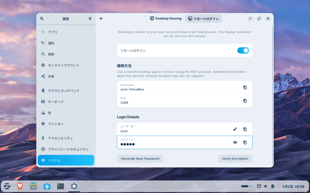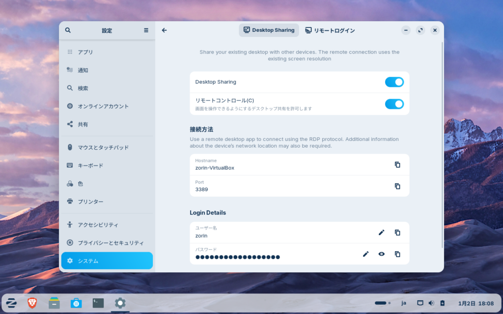 パスワードはUbuntuの場合、バージョンによっては省略可能ですが、Zorinでは必須です